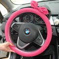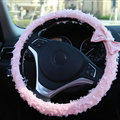 | Lace Bowknot Car Steering Wheel Cover Bud Silk Fiber Cloth 15 Inch 38CM - Pink |