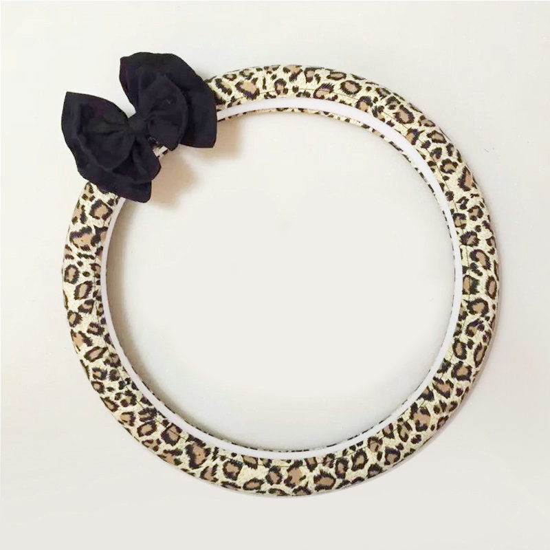 Leopard Bowknot Flax Universal Car Steering Wheel Covers 15 inch 38CM - Brown This item will be shipped from China