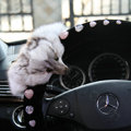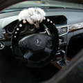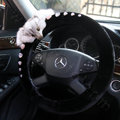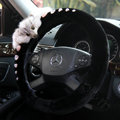 | Luxurious Genuine Wool Fox Fur Crystal Auto Steering Wheel Covers 15 inch 38CM - Black |