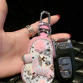 Luxurious Universal Crystal Genuine Leather Auto Key Bags Key Chain - Black