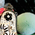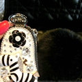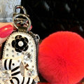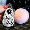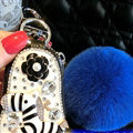 CODE:0006196128112015 NAME:Luxurious Universal Crystal Genuine Leather Auto Key Bags White Fur Ball Key Chain - Black