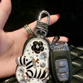 Description: 1.) Genuine leather car key cases key position is very clear, sticks and delicate, with a finger touching leather, very soft touch 2.) Import crystal, fine cutting, perfect refraction effects, collections of bright 3.) Keychain imported alloy production, eight plating, surface drawing more quality, 360 degree swivel keychain, more convenient and flexible 4.) The first layer of leather using carefully crafted, more flexibility, both inside and outside double leather, not easily deformed 5.) Exclusive package edge technology, more upscale than oil edge technology, wear leather professional line of high-strength, super quality assurance 6.) Anti-fall safety rope, lock key, double insurance, safer