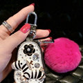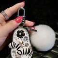 Luxurious Universal Crystal Genuine Leather Auto Key Bags White fur Ball Key Chain - Black This item will be shipped from China