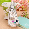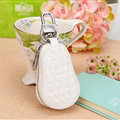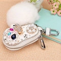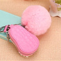 CODE:0006198130112015 NAME:Luxurious Universal Sheep Crystal Genuine Leather Auto Key Bags White Fur Ball Key Chain - White