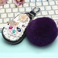 Luxurious Universal Sheep Crystal Genuine Leather Auto Key Bags White fur Ball Key Chain - White This item will be shipped from China