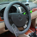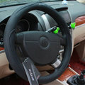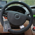 | Luxury Car Steering Wheel Wrap Sheepskin Genuine Leather 15 Inch 38CM - Black |