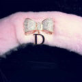 Luxury Diamond Bowknot Rex Rabbit Fur Car Steering Wheel Covers 15 Inch 38CM - Pink This item will be shipped from China