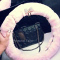 | Luxury Diamond Bowknot Rex Rabbit Fur Car Steering Wheel Covers 15 Inch 38CM - Pink |