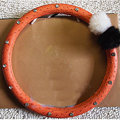 Luxury Diamond Fox Fur Ball Car Steering Wheel Covers Genuine Leather 15 inch 38CM - Red This item will be shipped from China