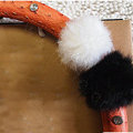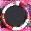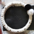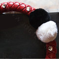 CODE:0005972512092015 NAME:Luxury Diamond Fox Fur Ball Car Steering Wheel Covers Genuine Leather 15 inch 38CM - Red