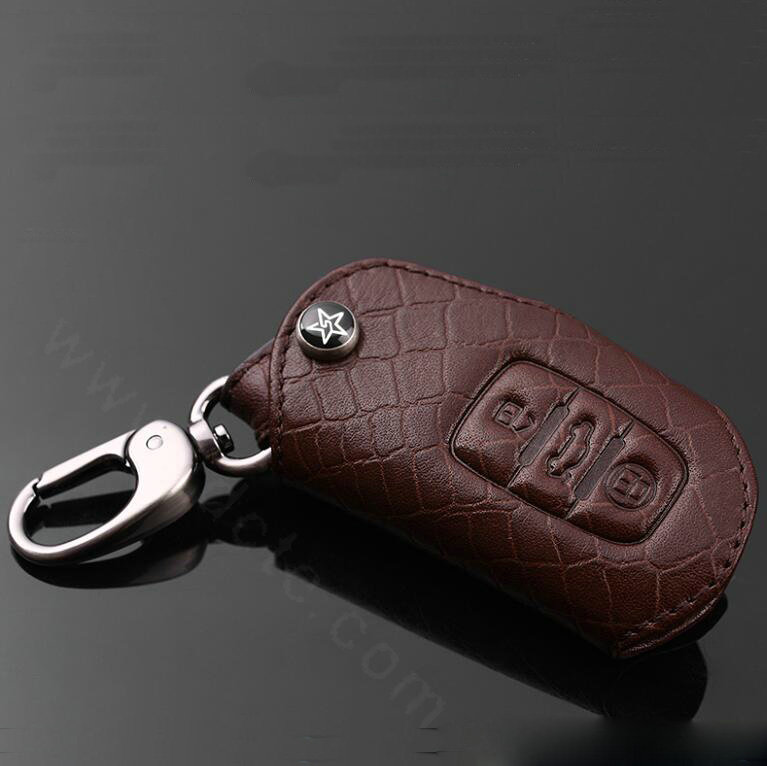 NAME:Clasic Genuine Leather Crocodile Grain Auto Key Bags Smart for Audi Q5 - Brown