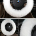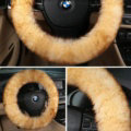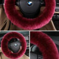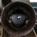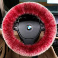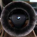 Luxury Long Fur Wool Car Steering Wheel Covers Handle Sleeves 15 Inch 38CM - Black This item will be shipped from China