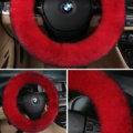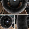 Luxury Long Fur Wool Car Steering Wheel Covers Handle Sleeves 15 Inch 38CM - Black