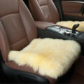 Luxury Pure Wool Universal Car Seat Cushion Winter Sheepskin Fur Auto Pads 1pcs - Beige