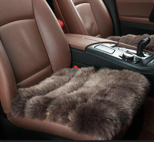 Luxury Pure Wool Universal Car Seat Cushion Winter Sheepskin Fur Auto Pads 1pcs - Beige This item will be shipped from China