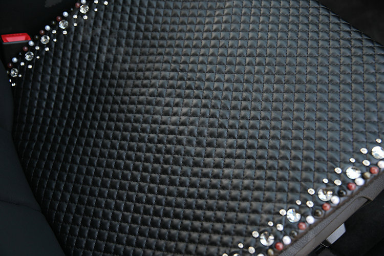 Luxury Women Rhinestone Genuine Sheepskin Auto Pad Universal Car Seat Cushion 1pcs - Black This item will be shipped from China