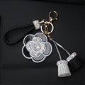 CODE:0006792514032019 NAME:Mirror Flower Tassels Cow Leather Diamond Crystal Car Keychain Handbag Car Keyring Key Pendant - Black