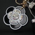 Mirror Flower Tassels Cow Leather Diamond Crystal Car Keychain Handbag Car Keyring Key Pendant - Black