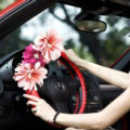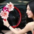 New Crystal Beaded Flower Pu Leather Car Steering Wheel Covers 15 inch 38CM - Red This item will be shipped from China