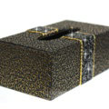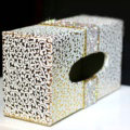 New Crystal Car Tissue Paper Box Case Golden Pattern Leather For Office Home Decor - White