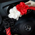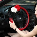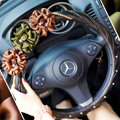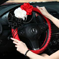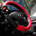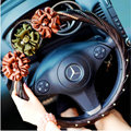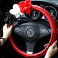 | Newest Luxury Pearl Flower Car Steering Wheel Covers Genuine Sheepskin 15 inch 38CM - Red |