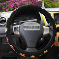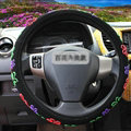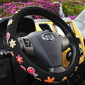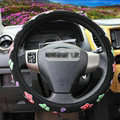 Personalized Beetle Flower Leather Universal Car Steering Wheel Covers 15 inch - Black This item will be shipped from China