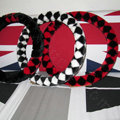 | Personalized Classic Plaid Plush Auto Steering Wheel Covers 14 inch 36CM - Black White |