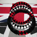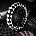 Personalized Classic Plaid Plush Auto Steering Wheel Covers 14 inch 36CM - Black White This item will be shipped from China