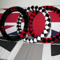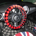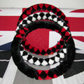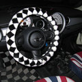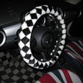 | Personalized Classic Plaid Plush Car Steering Wheel Covers 15 inch 38CM - Black White |