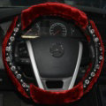 CODE:0006415919092016 NAME:Personalized Fur Wool Leather Crystal Car Steering Wheel Covers 15 Inch 38CM - Red