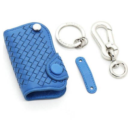 | Personalized Genuine Leather Long Hole Crocodile Grain Auto Key Bags Smart for Audi Q5 - Blue |