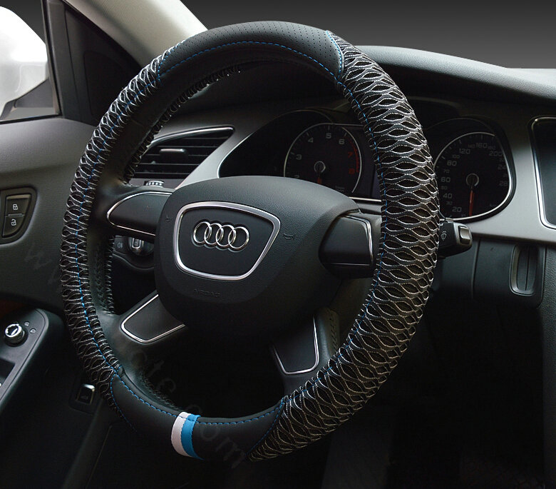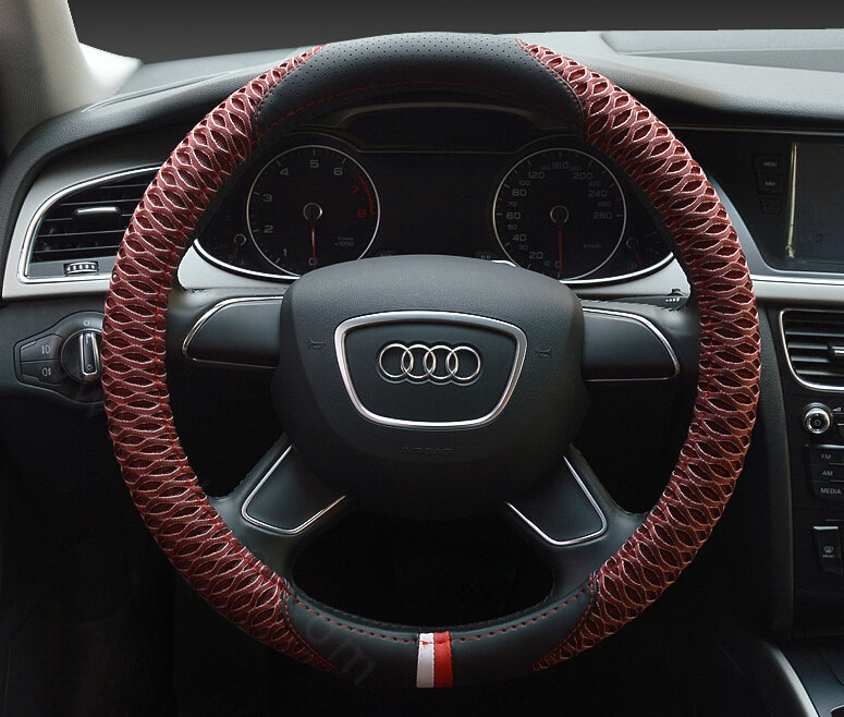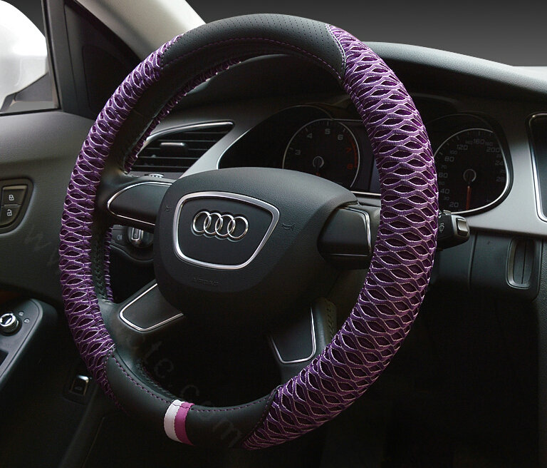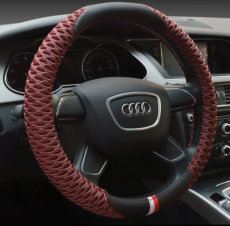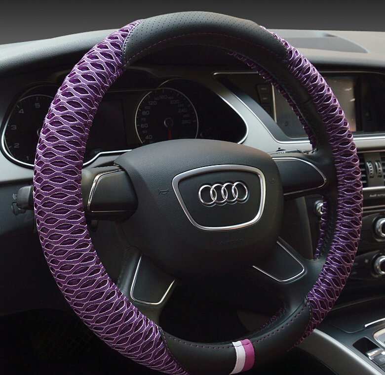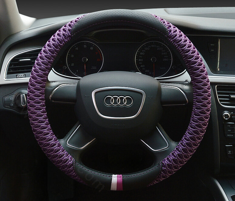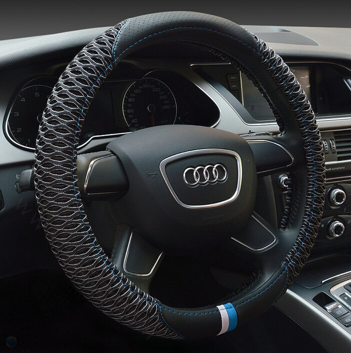 Pretty Car Steering Wheel Wrap Ice Silk PU Leather 15 Inch 38CM - Black This item will be shipped from China