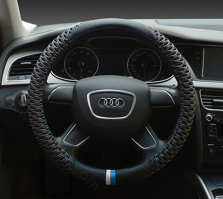 | Pretty Car Steering Wheel Wrap Ice Silk PU Leather 15 Inch 38CM - Black |