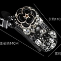 CODE:0006779521022019 NAME:Pretty Cute Camellia Universal Bling Leather Auto Key Bags Key Chain - Black