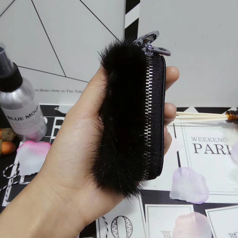 CODE:0006780721022019 NAME:Pretty Cute Plush Universal Bling Leather Auto Key Bags Key Chain - Black
