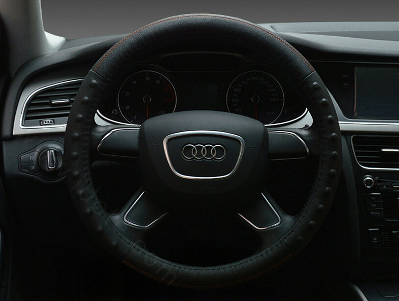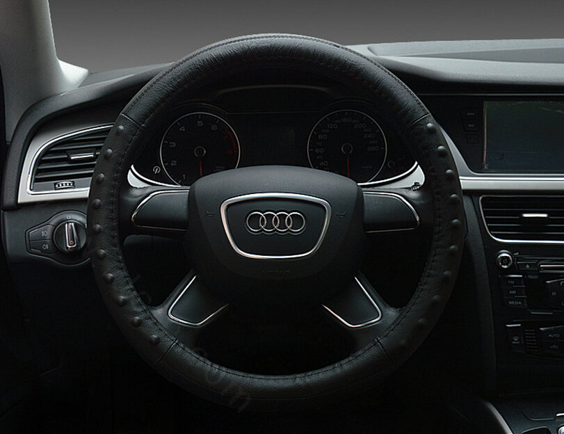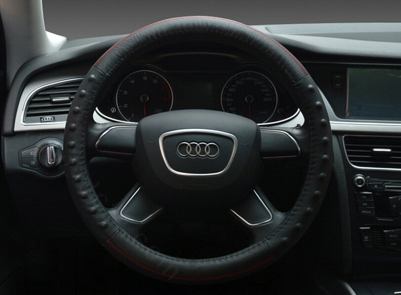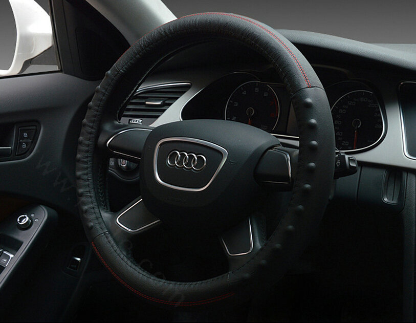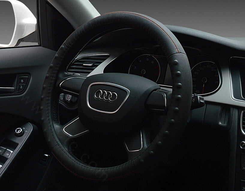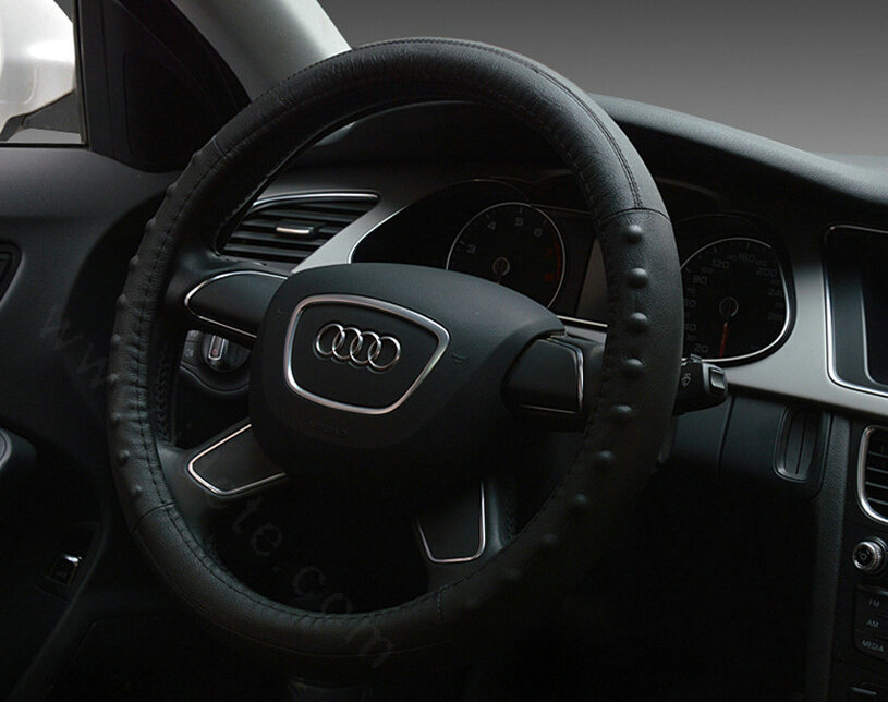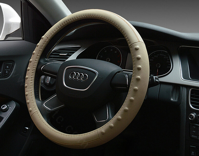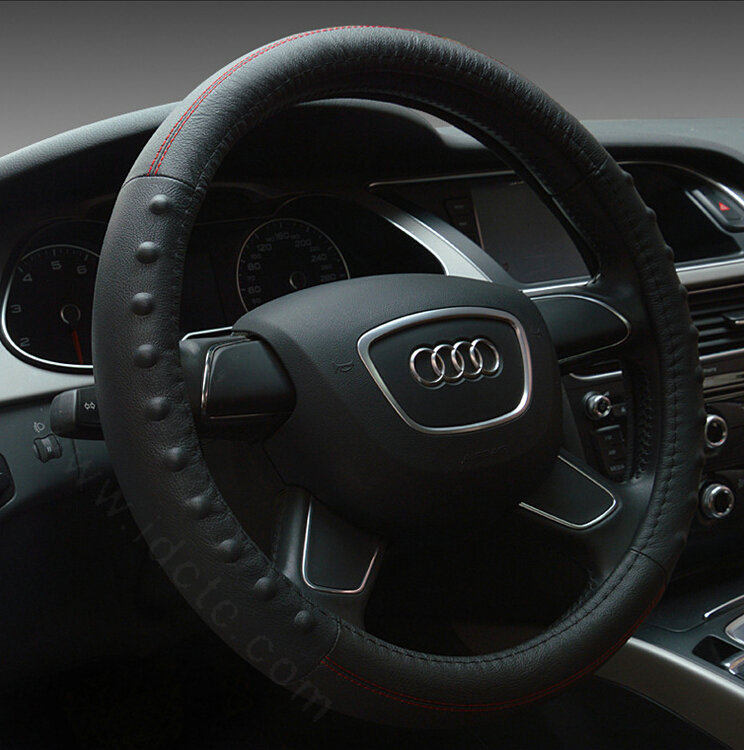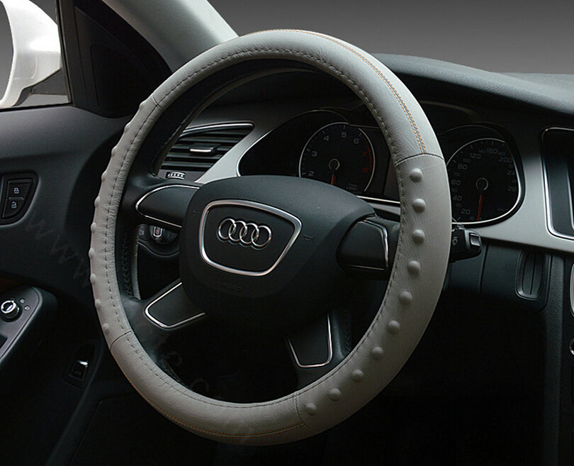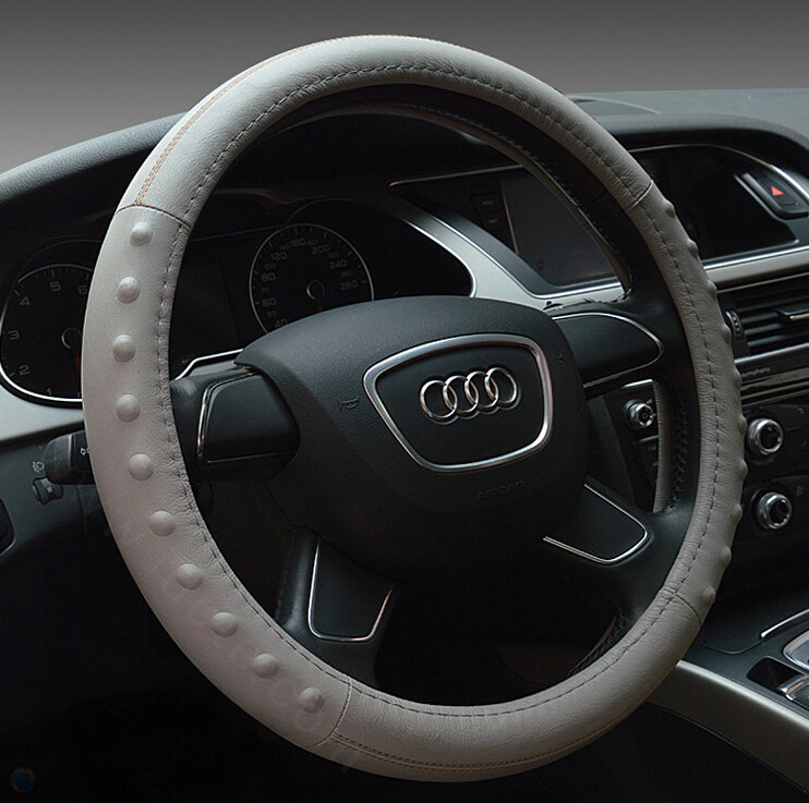 Pretty Dot Car Steering Wheel Covers Genuine Leather 15 Inch 38CM - Grey This item will be shipped from China