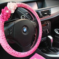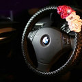 | Pretty Flower Knitting Car Steering Wheel Wrap PU Leather 15 Inch 38CM - Pink |