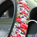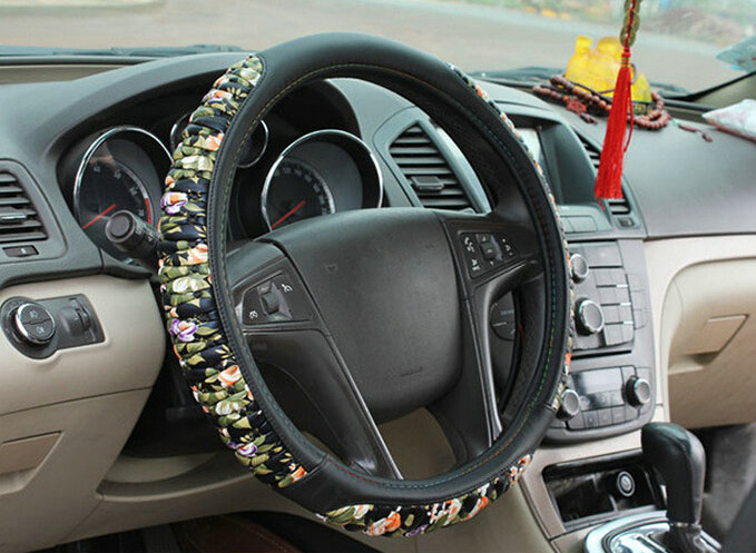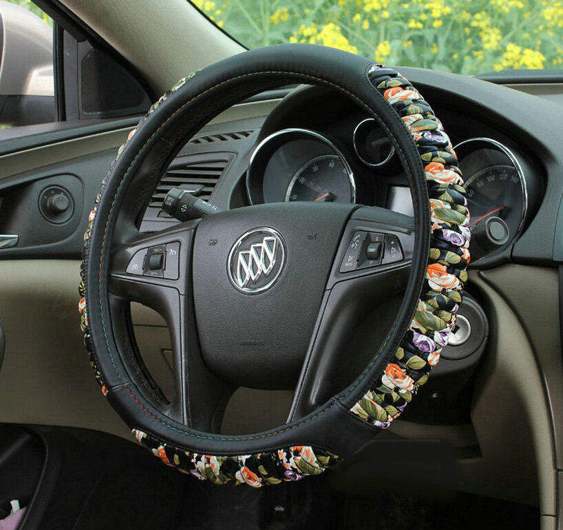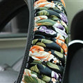 Pretty Flower Print Car Steering Wheel Wrap PU Leather 15 Inch 38CM - Black This item will be shipped from China