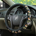 | Pretty Flower Print Car Steering Wheel Wrap PU Leather 15 Inch 38CM - Black |