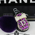 CODE:0006212302122015 NAME:Pretty Universal Crystal Genuine Leather Auto Key Bags Fur Ball Key Chain - White