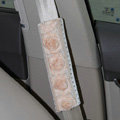 Princess Bud Silk Flower Print Synthetic Fiber Automotive Seat Safety Belt Covers Car Decoration 2pcs - Beige
