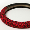 Retro Auto Car Steering Wheel Cover Leopard Lace Plush Diameter 15 inch 38CM - Red Black