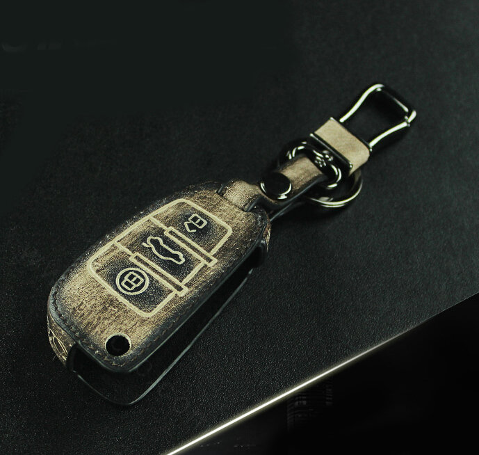 Retro Genuine Leather Auto Key Bags Fold for Audi Q3 - Black This item will be shipped from China