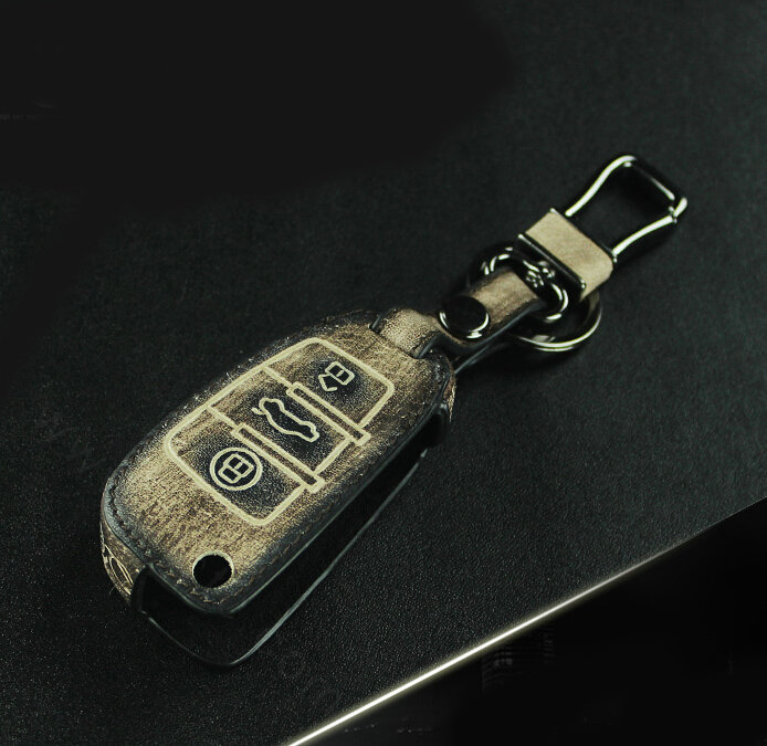 Retro Genuine Leather Auto Key Bags Fold for Audi Q5 - Black This item will be shipped from China
