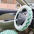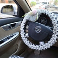 Rhombus Flower Lace Car Steering Wheel Cover Bud Silk Fiber Cloth 15 Inch 38CM - Pink