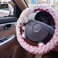 CODE:0006160624112015 NAME:Rhombus Flower Lace Car Steering Wheel Cover Bud Silk Fiber Cloth 15 Inch 38CM - Pink