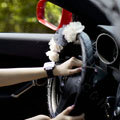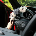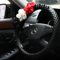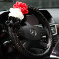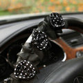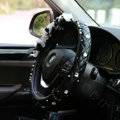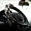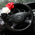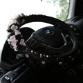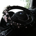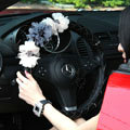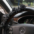 Romantic Auto Car Steering Wheel Cover flower Lace Pearl Diameter 15 inch 38CM - Black