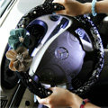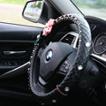 CODE:0002525509102013 NAME:Romantic Auto Car Steering Wheel Cover flower Lace Pearl Diameter 15 inch 38CM - Black