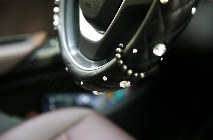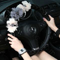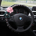 Romantic Auto Car Steering Wheel Cover flower Lace Pearl Diameter 15 inch 38CM - Black This item will be shipped from China