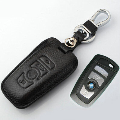 Simple Genuine Leather Auto Key Bags Smart for BMW 318i - Black This item will be shipped from China